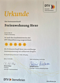 Die Ferienwohnung HEXE ist ca. 76 m² groß. Die modern und geschmackvoll eingerichteten Räume - alle mit traumhaftem Blick auf den Glockenberg - verteilen sich auf zwei Halbebenen und sind für bis zu 4 Personen komplett ausgestattet.